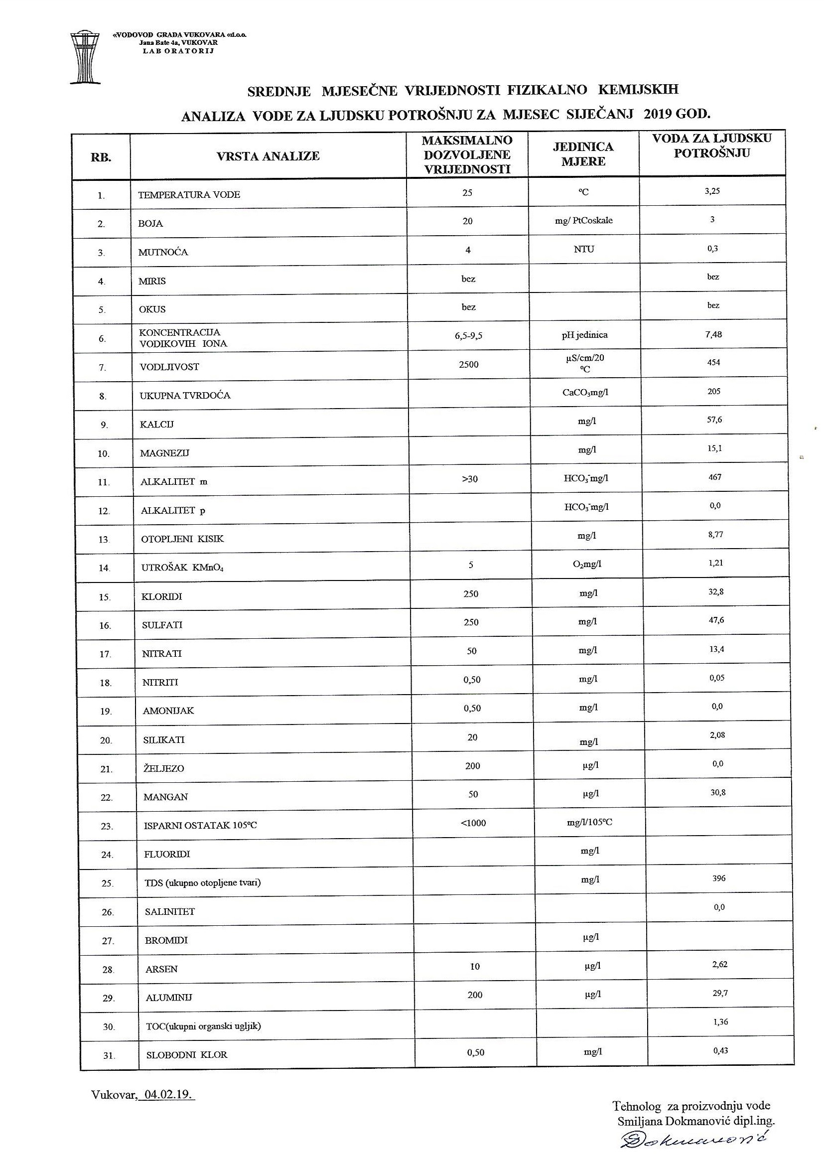 analiza pitke vode – veljača 2019.